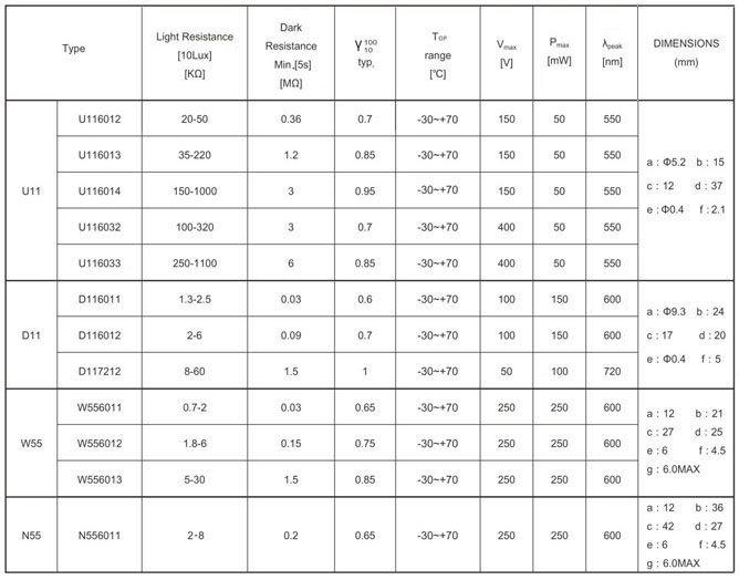 A90 series photoresistors