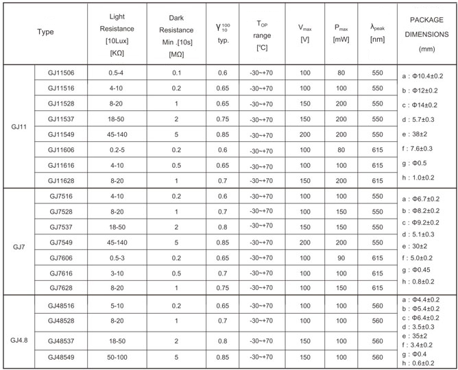 A90 series photoresistors