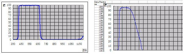 T=50% 短波長(zhǎng)側(cè)390(+10,-15)nm 長(zhǎng)波長(zhǎng)側(cè)640(+15,-10)nm