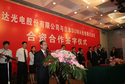 利達(dá)光電股份有限公司和日本SUWA光電株式會社合資合作簽字儀式在南陽舉行