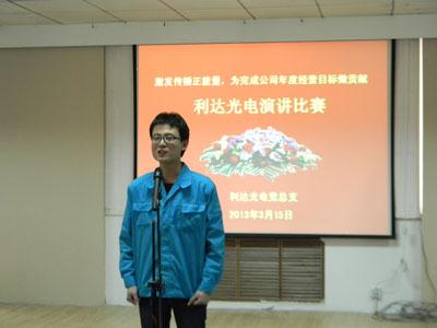 ??????? 為深入學習貫徹利達公司2013年經(jīng)營工作會議精神,進一步明確發(fā)展目標,統(tǒng)一全員思想,激發(fā)傳播正能量,推動公司自我變革活動,在春暖花開、充滿希望的季節(jié),利達光電黨總支舉辦“激發(fā)傳播正能量,為完成公司2013年經(jīng)營目標做貢獻”演講比賽活動。