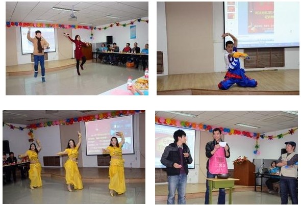 ????? 晚會(huì)現(xiàn)場(chǎng)雖然比較節(jié)儉,卻處處洋溢著喜氣洋洋的和諧氛圍。晚會(huì)內(nèi)容豐富多彩,包括歌曲、戲曲、舞蹈、小品、魔術(shù)、男女對(duì)唱、武術(shù)等十五個(gè)節(jié)目,給全體觀眾們帶來(lái)了一場(chǎng)美妙的視聽(tīng)盛宴。一首合唱歌曲《猜》拉開(kāi)本次晚會(huì)的帷幕;熱辣,奔放的西班牙之夜、印巴熱舞給大家?guī)У搅水悋?guó)情域;根據(jù)公司文化改編的小品《找工作》妙趣橫生,耐人尋味,迸發(fā)出積極向上的正能量;武術(shù)表演懸念頓生,豪氣沖天;歌曲《暗香》、《猜》演繹了情深意長(zhǎng)、溫馨浪漫的真摯情感;詩(shī)朗誦《咱們工人有力量》,節(jié)目巧妙運(yùn)用詩(shī)朗誦獨(dú)特的語(yǔ)言藝術(shù),謳歌公司發(fā)生的變化和取得的輝煌成就,歌頌了利達(dá)人的敬業(yè)精神、團(tuán)隊(duì)合作精神,真情流露,感人肺腑,讓在座的觀眾贊嘆;小品《胡導(dǎo)》以其詼諧幽默的語(yǔ)言、滑稽搞笑的到位表演的藝術(shù)表現(xiàn)形式更是笑爆全場(chǎng);更有郭富強(qiáng)表演的魔術(shù)和蔣麗的戲曲表演,讓我們領(lǐng)略了利達(dá)人別樣的激情與風(fēng)采。抽獎(jiǎng)活動(dòng)穿插期間,將聯(lián)歡會(huì)氣氛一次次推向高潮。