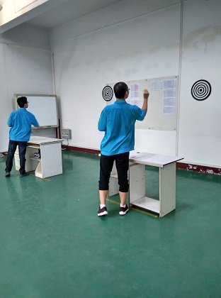 ??????? 下午4點鐘,外邊溫度仍在30度以上,但絲毫未減弱大家參加活動的熱情。此次活動以團體項目為主,過程中穿插個人項目。團體項目讓大家認識到團隊的作用,提高合作意識。在團體活動中,大家為積極為本班組爭榮譽。團體項目共分三輪,第一輪是‘團體飛鏢賽’,需要隊員有集體榮譽觀,為了團隊,耐心、用心的投擲出好成績;第二輪是‘跳躍彩虹’比賽。在比賽中,需要團隊做好分工,誰甩繩,誰先跳,誰后跳,需要計劃好,才能得到好成績。第三輪團隊比賽是‘瘋狂爆破’,要求兩人用背運氣球,到終點后用背擠爆。此項目是讓大家最撿樂的比賽。比賽中,狀況百出,有的運到半路氣球飛了,有的不到終點氣球爆了,還有的到了終點就是擠不破氣球,各種出其不意的狀況讓大家笑得前仰后合。