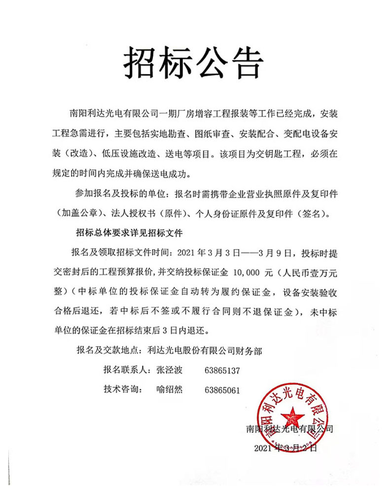 新廠區(qū)廠房電力擴容改造招標(biāo)公告