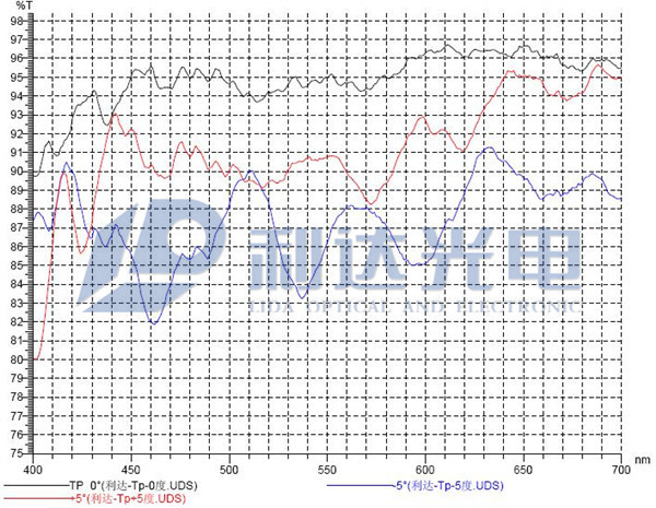 P光0°入射 420 ~680nm Tp(平均)≥94%; 440 ~640nm Tp(絕對(duì))≥90% ± 5° Tp(平均)≥86%。