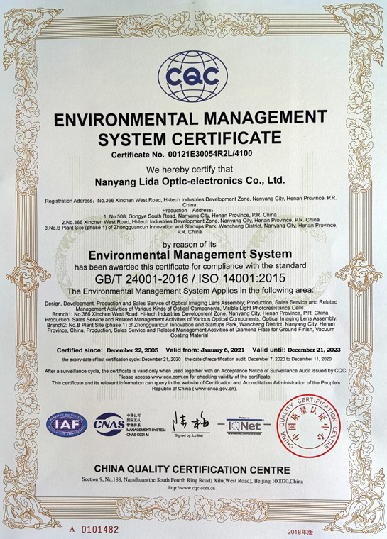 環(huán)境管理體系認證證書(英文)