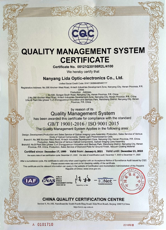 質(zhì)量管理體系認(rèn)證證書(shū)(英文)